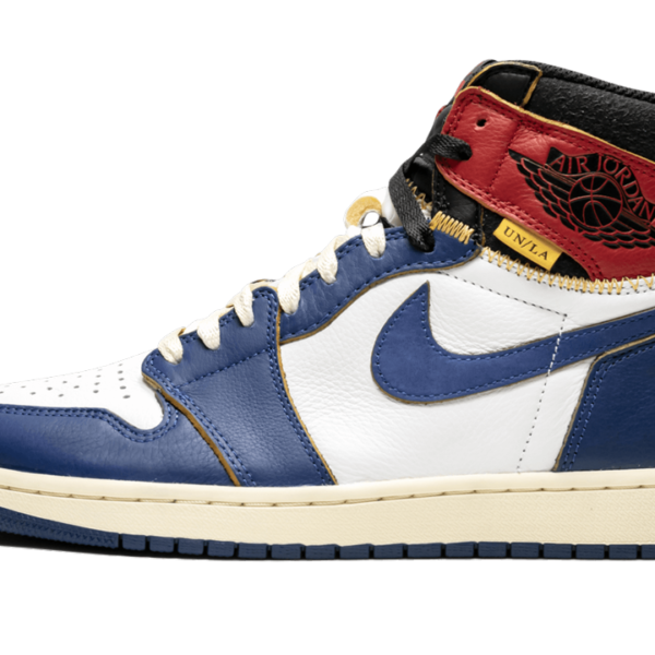 The Union x Air Jordan 1 “Storm Blue” is one of two special editions of Michael Jordan’s first signature shoe from the Los Angeles menswear boutique. The cut and paste theme of the collaboration by Union combines two original colorways of the Air Jordan 1 into one shoe. For the “Storm Blue” colorway, the design combines the body of the original white and blue version with the red and black ankle of the “Bred” colorway. The colorway has a vintage look with yellowed leather that has a distressed treatment around the ankle paneling. A “UN/LA” patch is added to each ankle to complete the unique construction. The Union x Air Jordan 1 “Storm Blue” was released in limited quantities in November 2018.